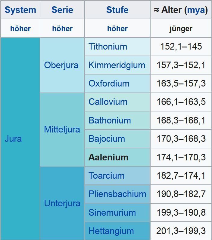 Im Bereich der Ostalb sind vor allem die Gesteinsschichten des Jura-Zeitalters aufgeschlossen, dementsprechend finden sich hier die versteinerten Überreste ehemaliger Bewohner des tropisch warmen Jura-Meeres (Tethys-Meer). Das Zeitfenster des Jura erstreckt sich über rund 50 Millionen Jahre.